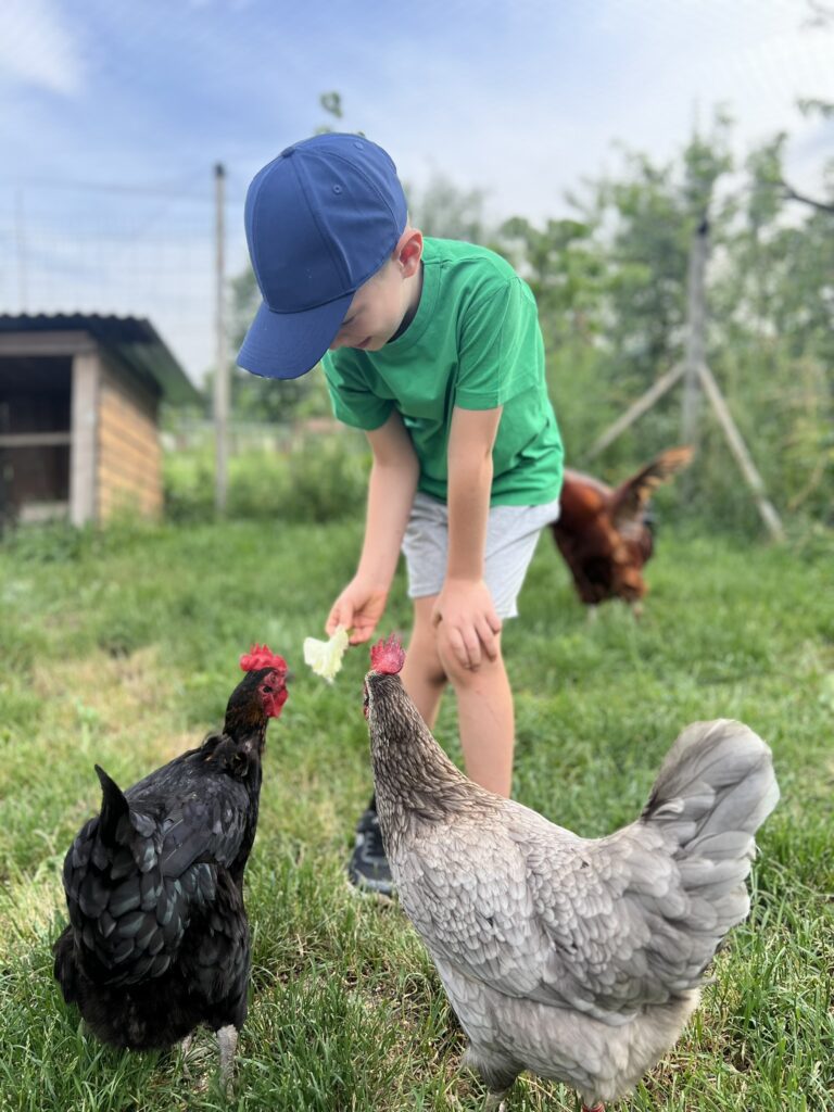 - Stallbesuch bei den Hühnern: Eier sammeln, Körner streuen, Nestplätze inspizieren