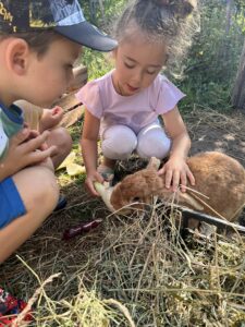 Auf unserem Bauernhof beobachten wir gemeinsam, wie die Tiere leben, was sie gerne fressen und wie wir uns gut um sie kümmern können. Dabei üben die Kinder Achtsamkeit, Rücksichtnahme und den liebevollen Umgang mit Lebewesen – und dürfen dabei auch ganz viel selbst ausprobieren!